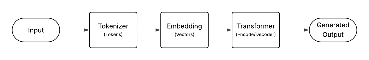 - Embedding: Turns tokens into vectors representing meaning and position.